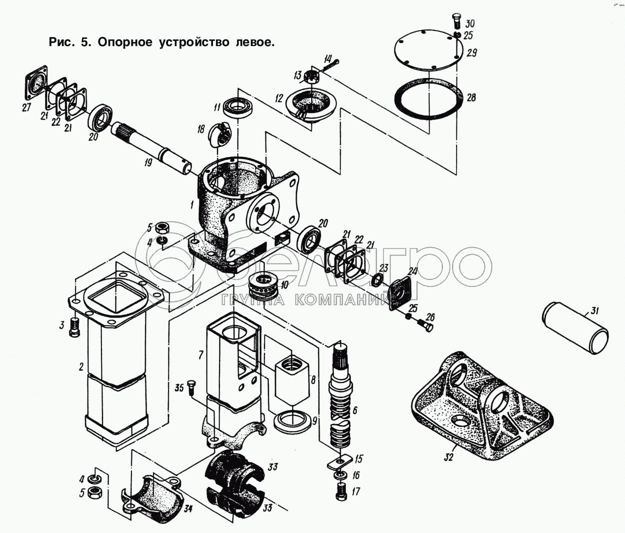 Каталог запасных частей к технике: МАЗ-93892. Опорное устройство левое