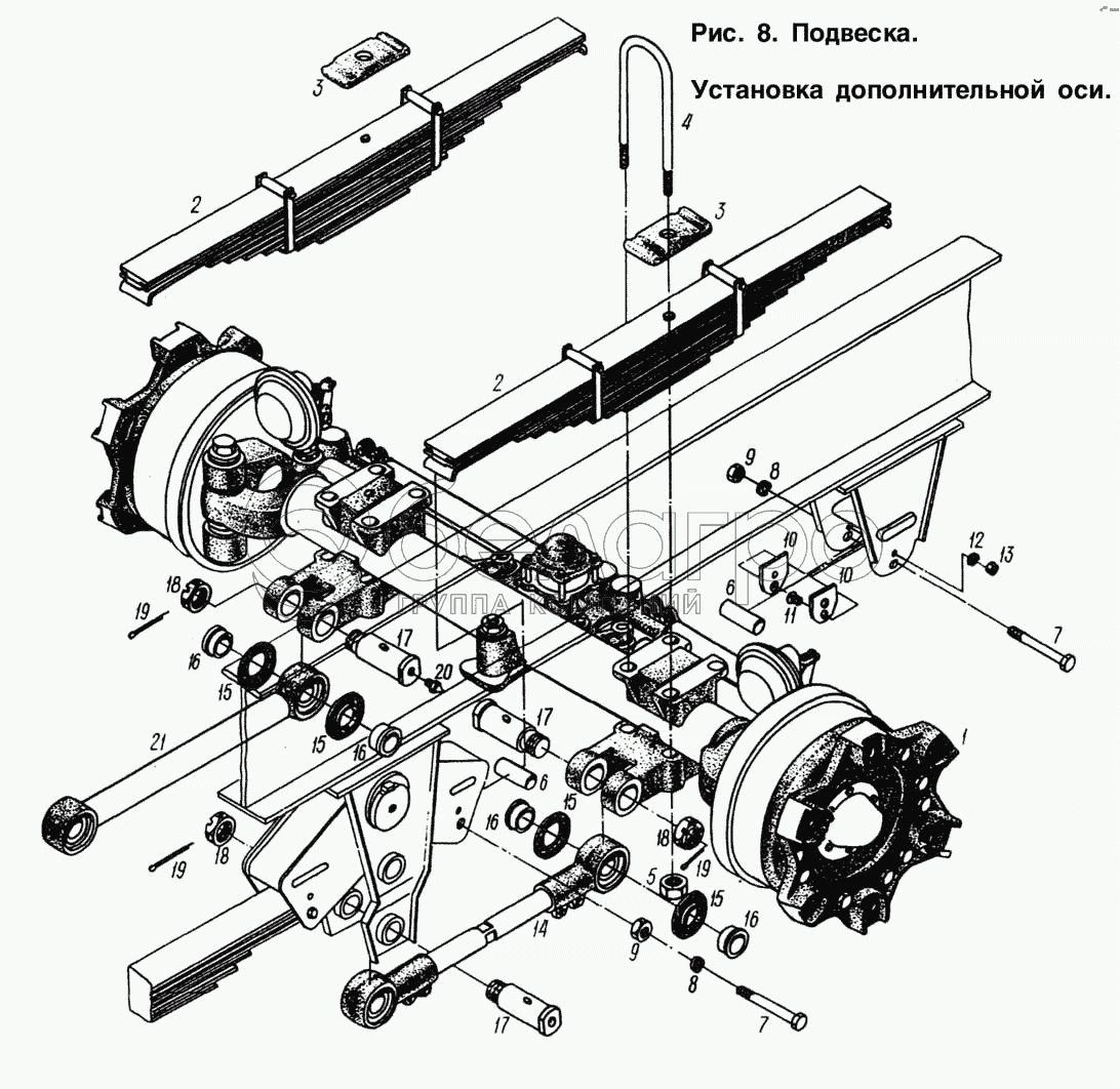 Каталог запасных частей к технике: МАЗ-93892. Подвеска. Установка дополнительной оси