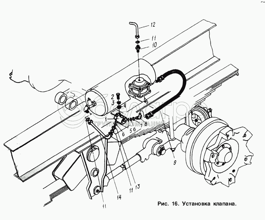 Каталог запасных частей к технике: МАЗ-93892. Установка клапана
