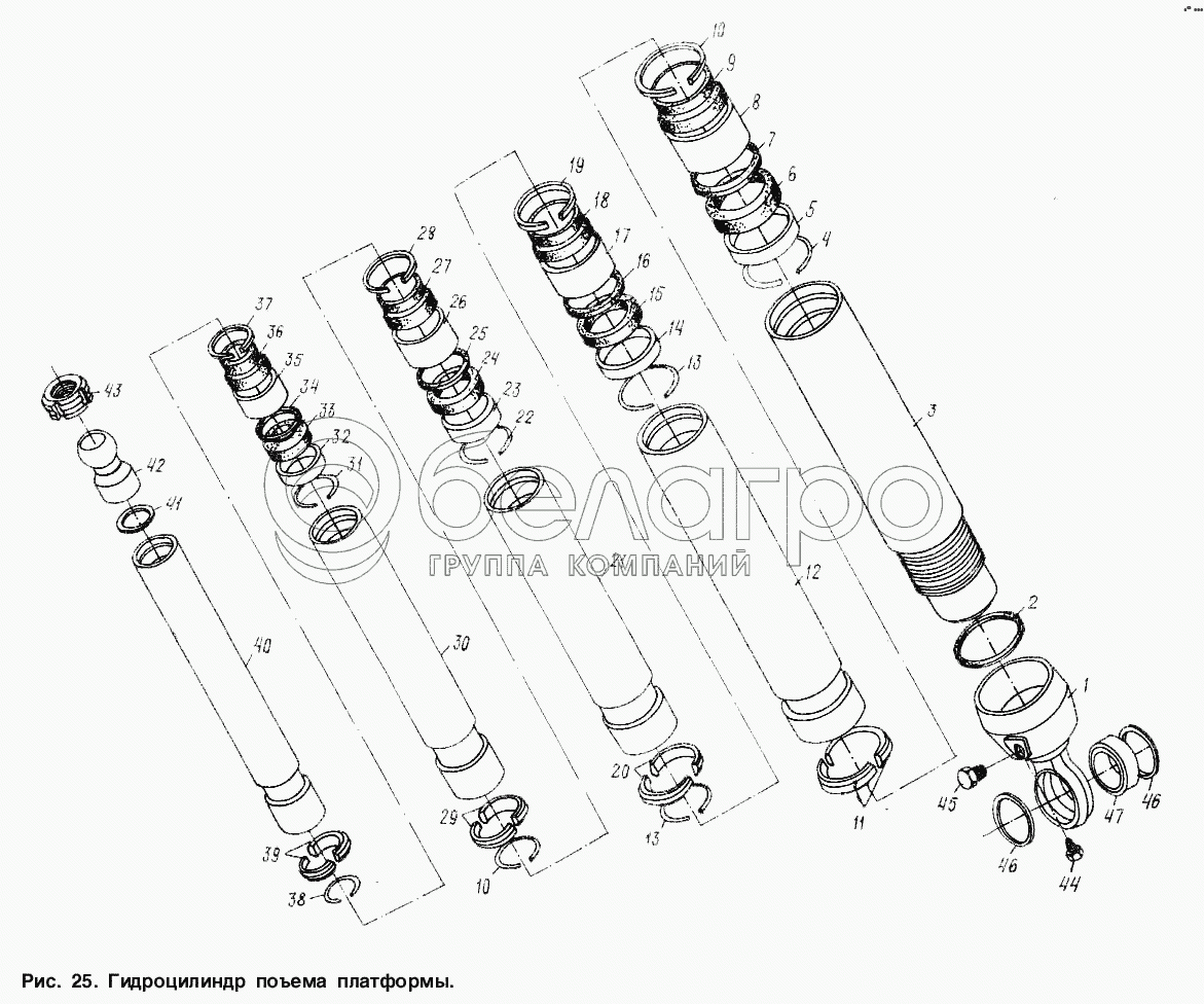 Каталог запасных частей к технике: МАЗ-9506. Гидроцилиндр подъема платформы