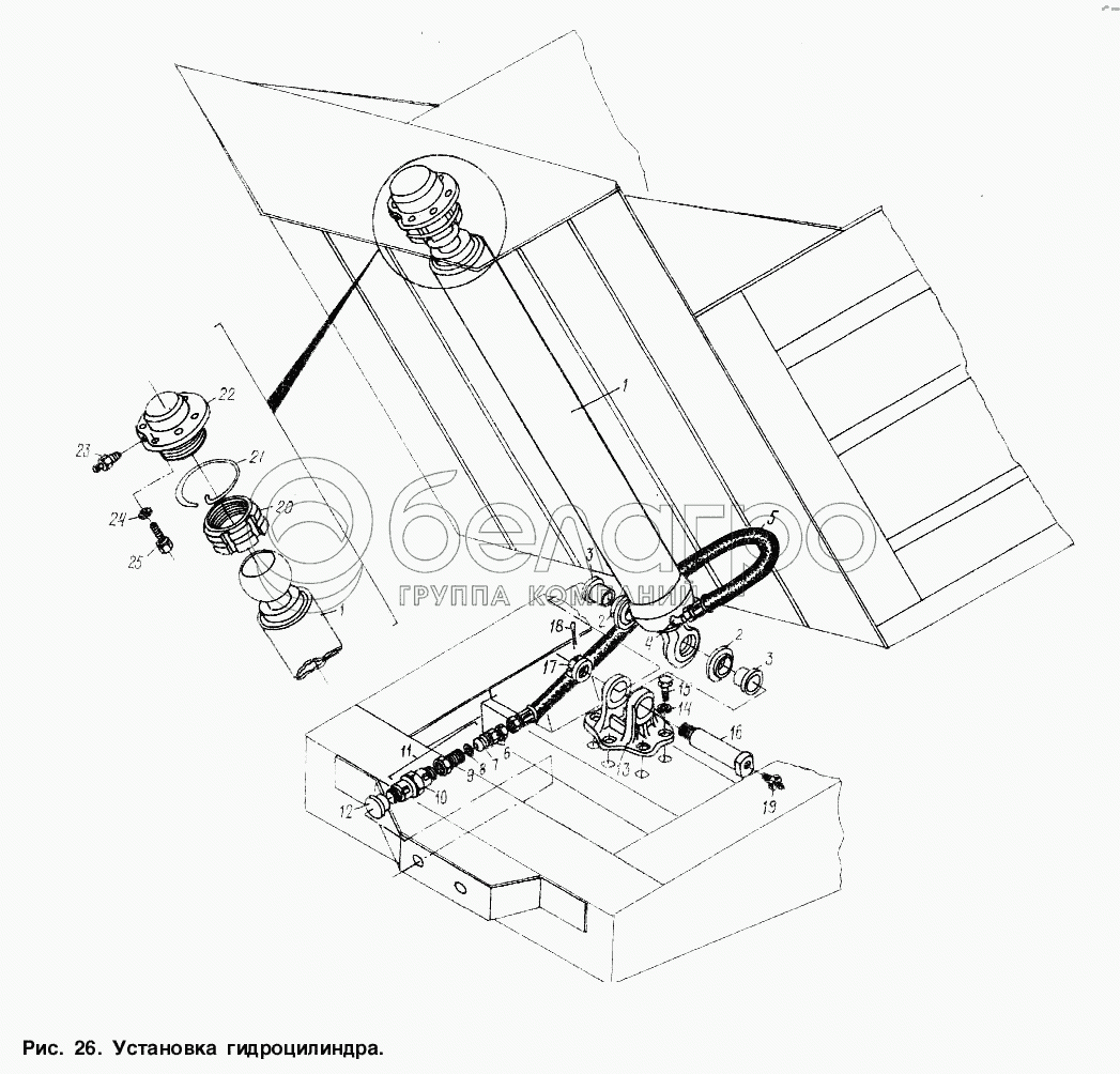 Каталог запасных частей к технике: МАЗ-9506. Установка гидроцилиндра