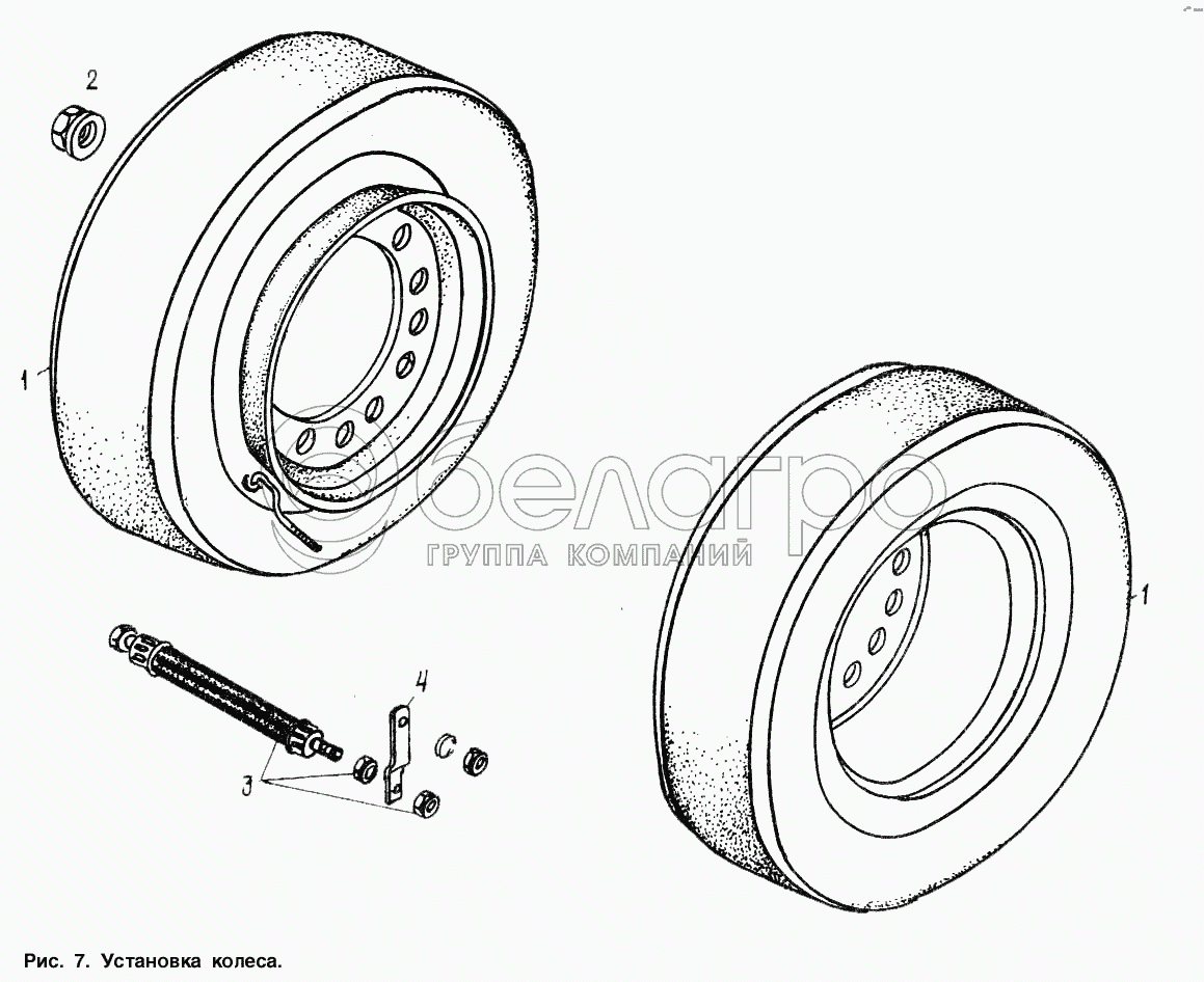 Каталог запасных частей к технике: МАЗ-9506. Установка колеса