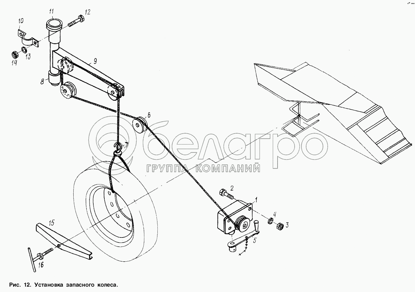 Каталог запасных частей к технике: МАЗ-9506. Установка запасного колеса