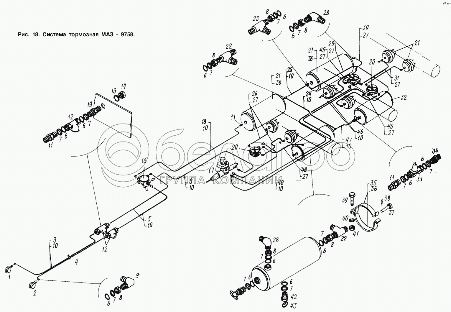 Каталог запасных частей к технике: МАЗ-9758-30. Система тормозная МАЗ 9758