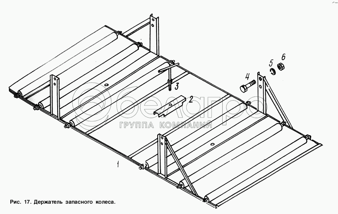 Каталог запасных частей к технике: МАЗ-9758. Держатель запасного колеса