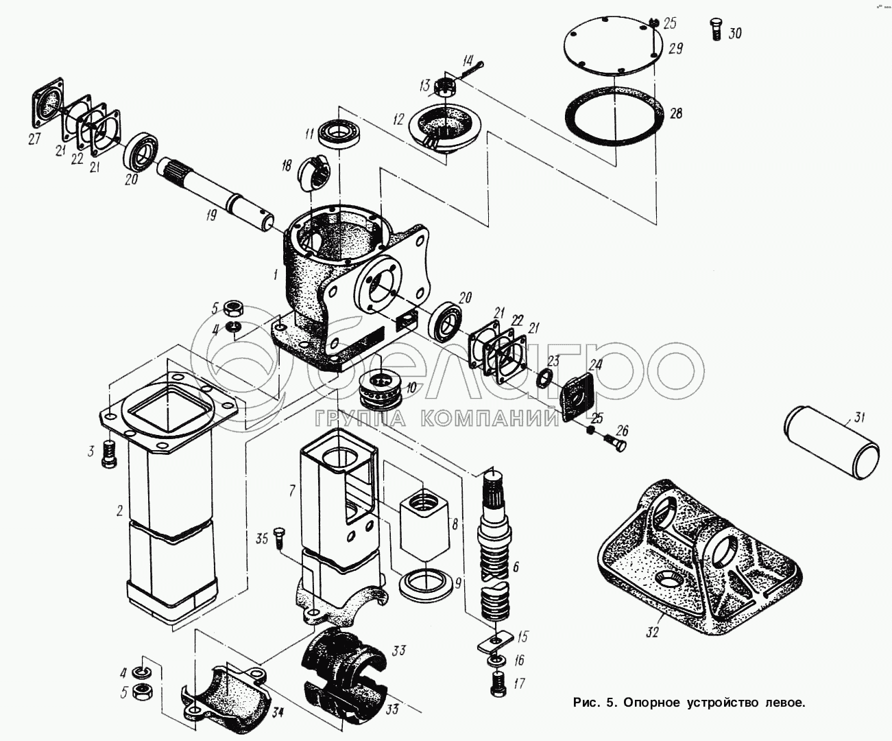 Каталог запасных частей к технике: МАЗ-9758. Опорное устройство левое
