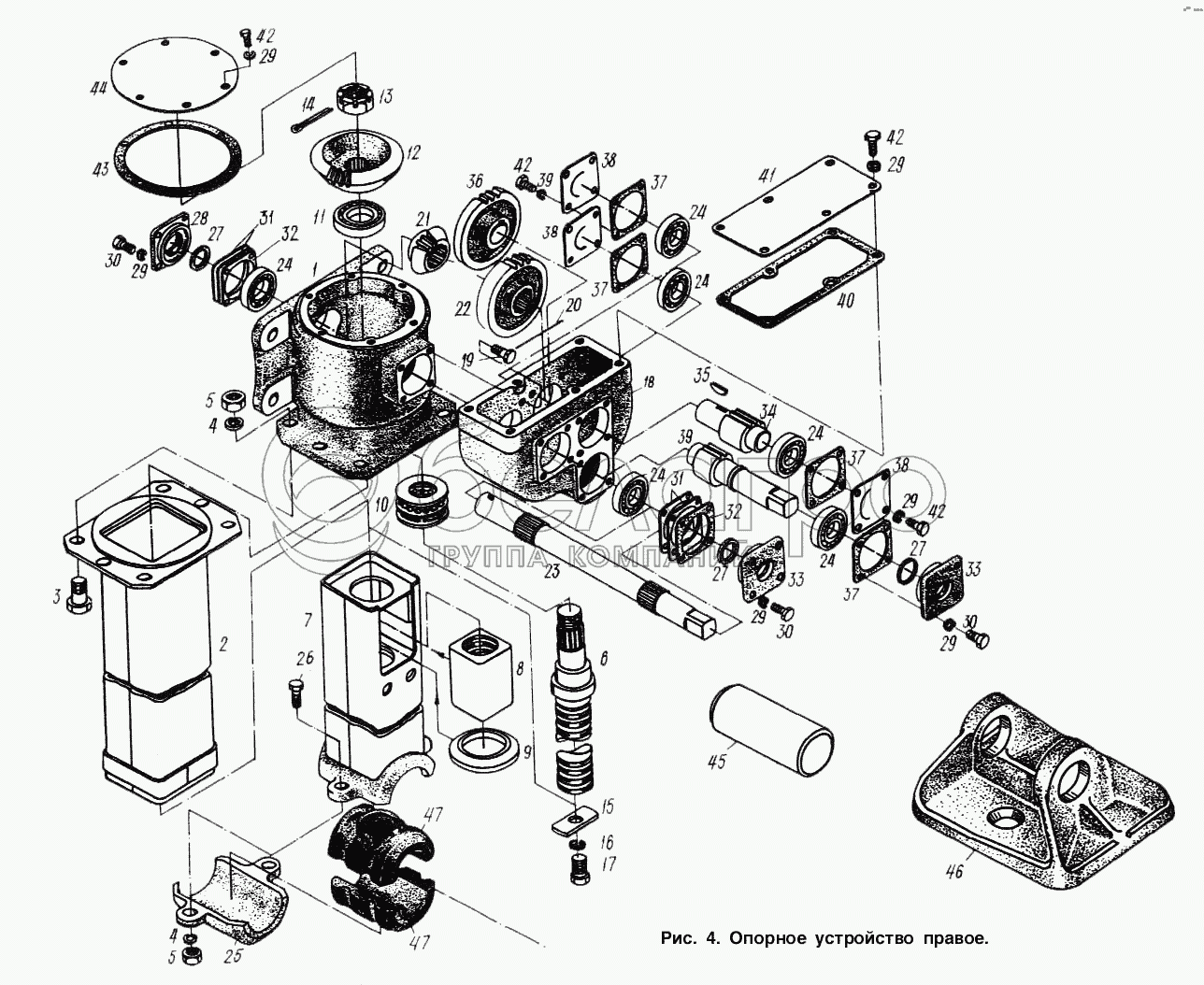 Каталог запасных частей к технике: МАЗ-9758. Опорное устройство правое