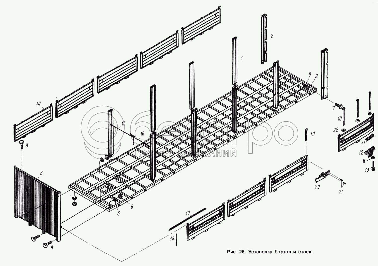 Каталог запасных частей к технике: МАЗ-9758. Установка бортов и стоек