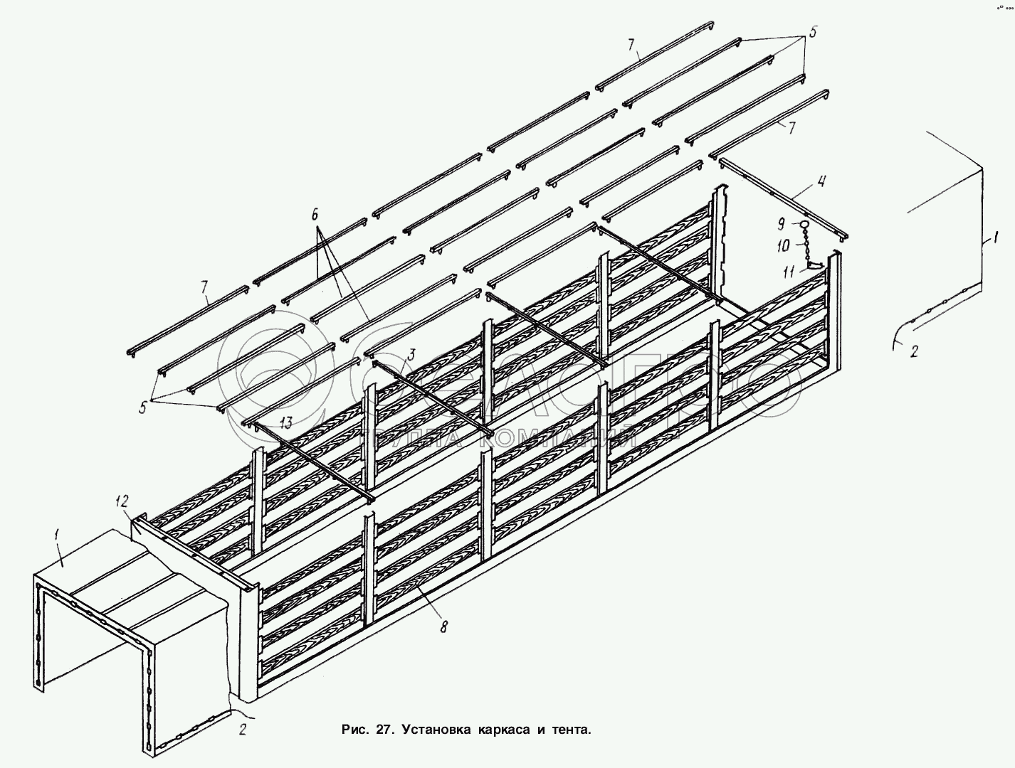 Каталог запасных частей к технике: МАЗ-9758. Установка каркаса и тента