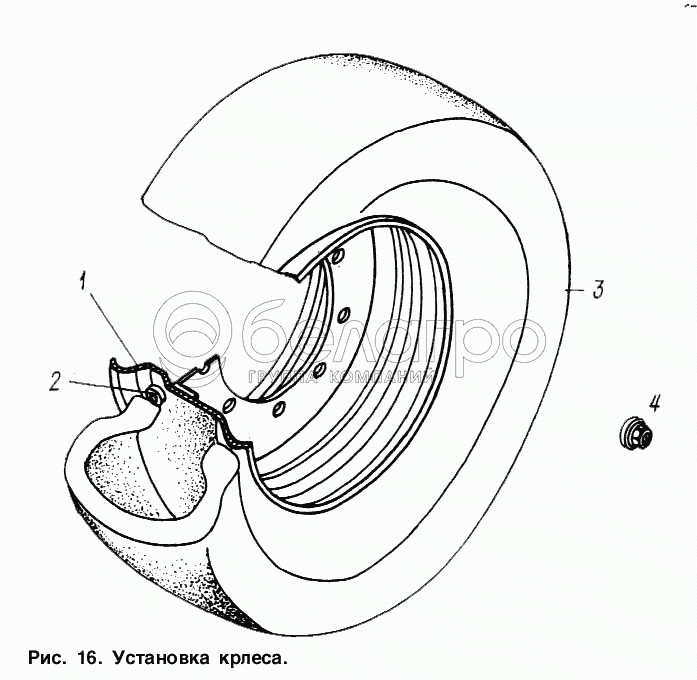 Каталог запасных частей к технике: МАЗ-9758. Установка колеса
