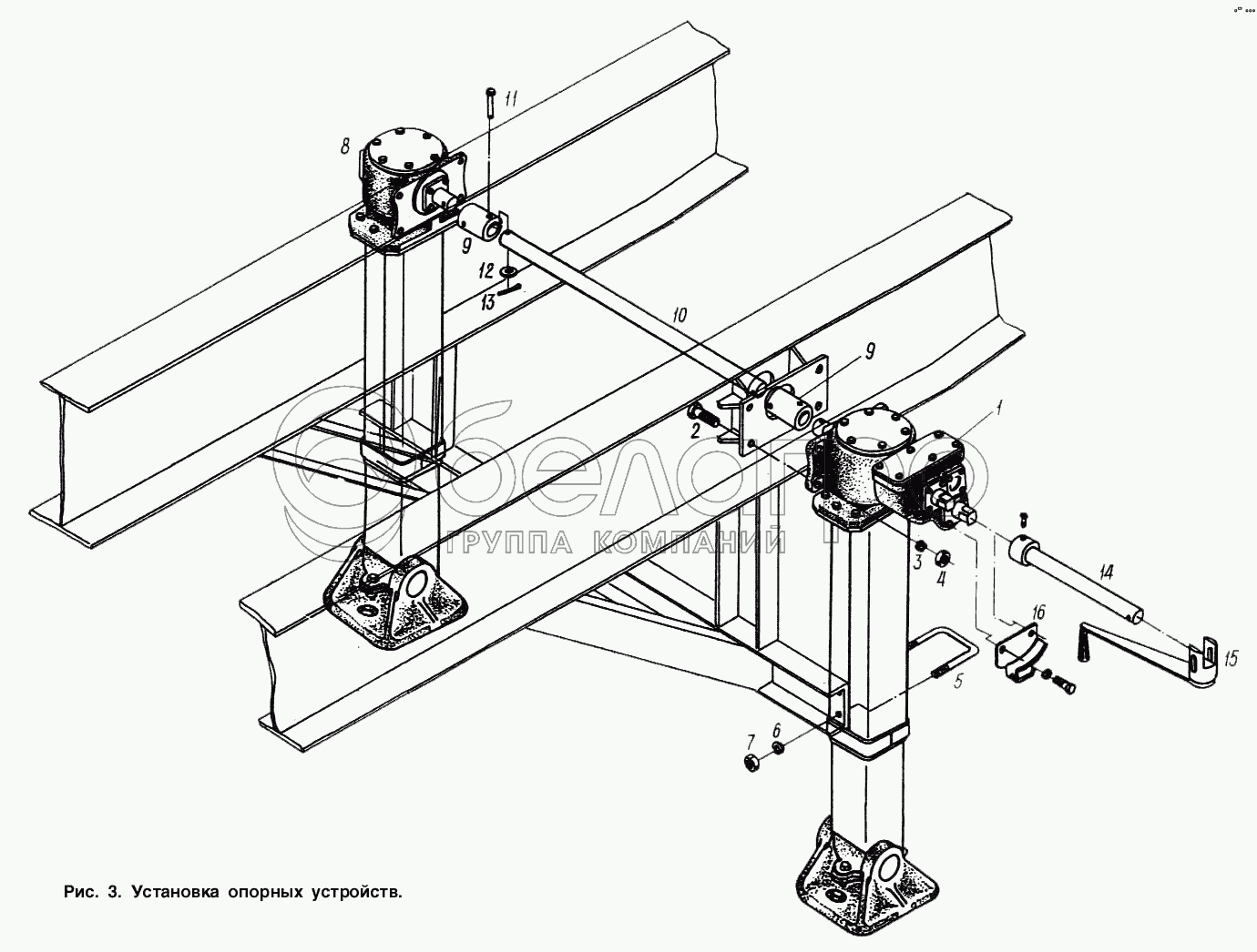 Каталог запасных частей к технике: МАЗ-9758. Установка опорных устройств