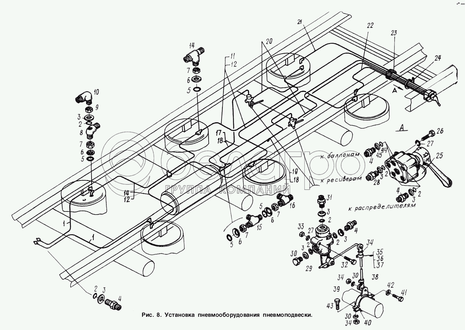 Каталог запасных частей к технике: МАЗ-9758. Установка пневмооборудования подвески