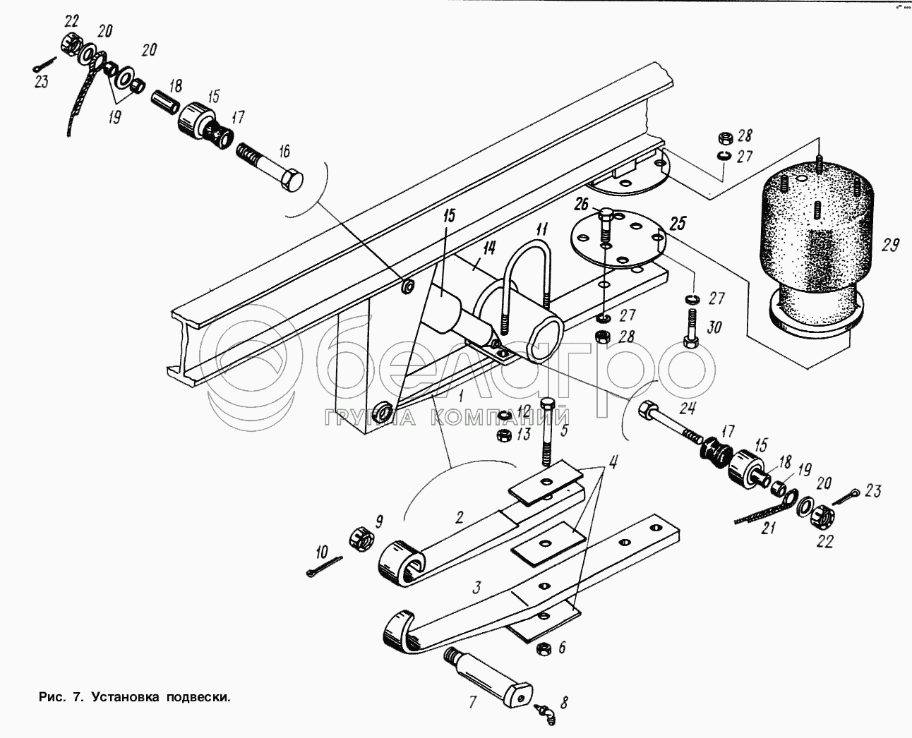 Каталог запасных частей к технике: МАЗ-9758. Установка подвески
