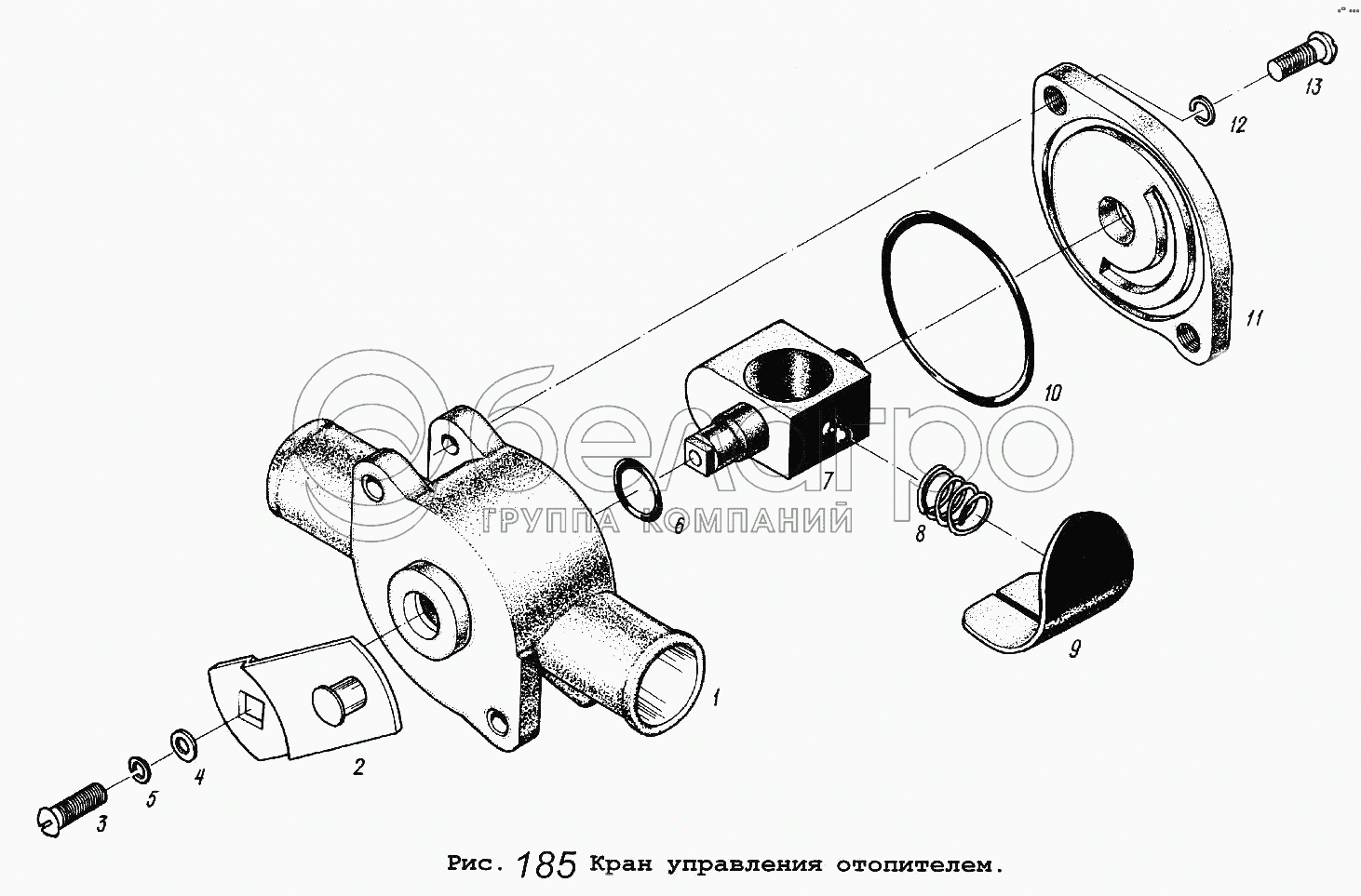 Каталог запасных частей к технике: МАЗ Общий (см. мод-ции). Кран управления отопителем