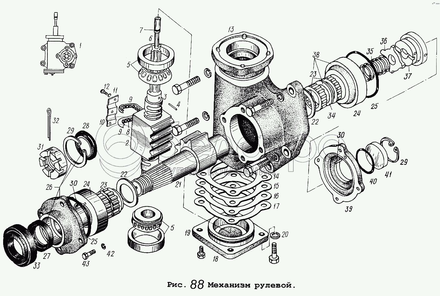 Каталог запасных частей к технике: МАЗ Общий (см. мод-ции). Механизм рулевой