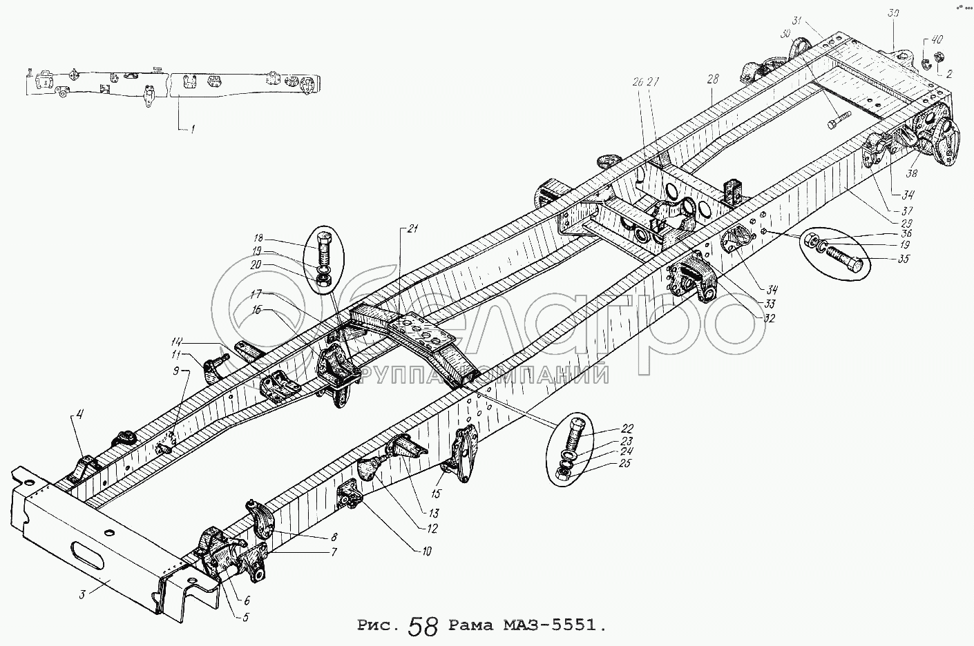Каталог запасных частей к технике: МАЗ Общий (см. мод-ции). Рама МАЗ-5551