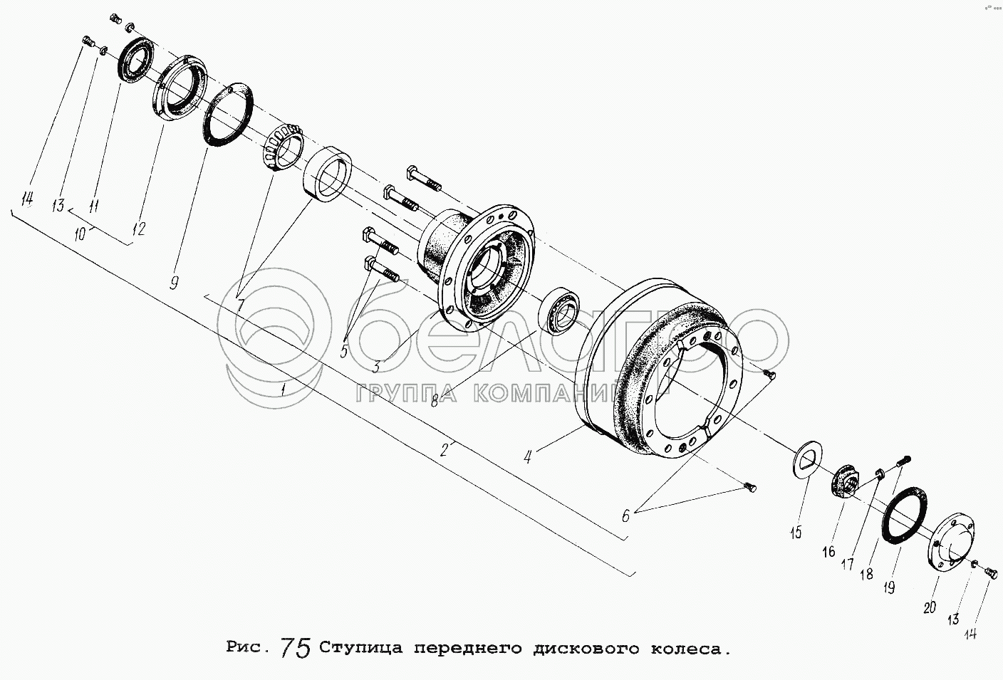 Каталог запасных частей к технике: МАЗ Общий (см. мод-ции). Ступица переднего дискового колеса