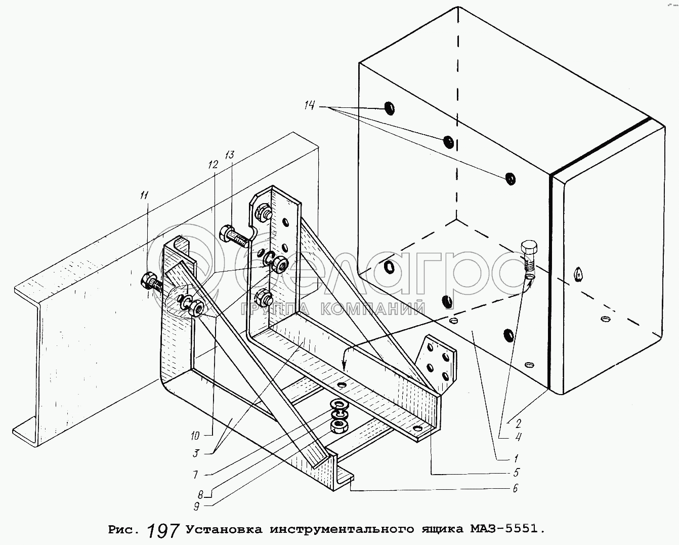 Каталог запасных частей к технике: МАЗ Общий (см. мод-ции). Установка инструментального ящика МАЗ-5551