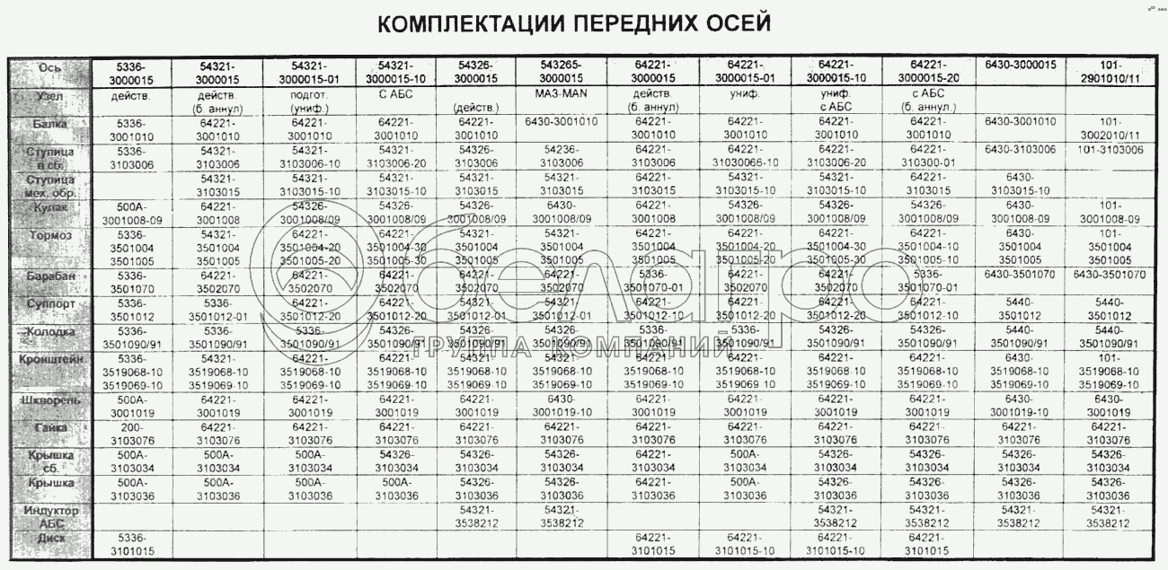 Каталог запасных частей к технике: МАЗ Справочник. Комплектации передних осей