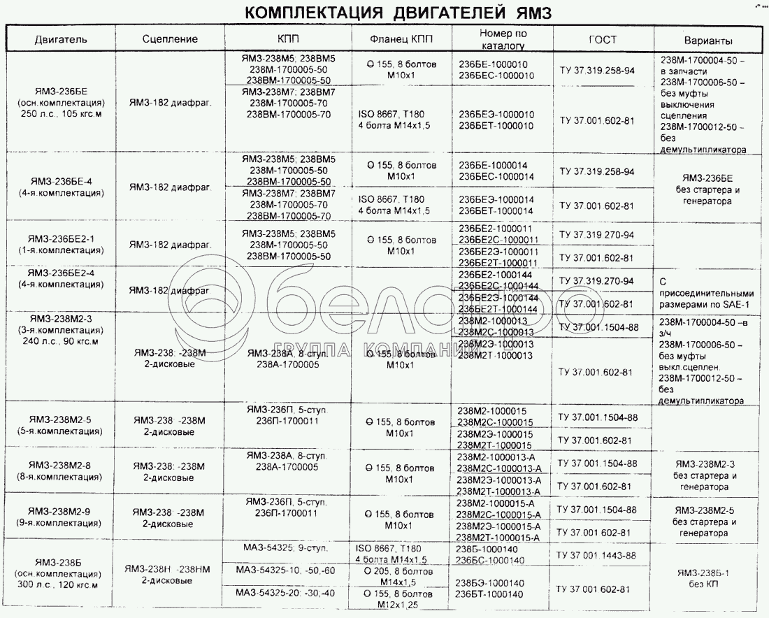 Каталог запасных частей к технике: МАЗ Справочник. Комплектация двигателей ЯМЗ