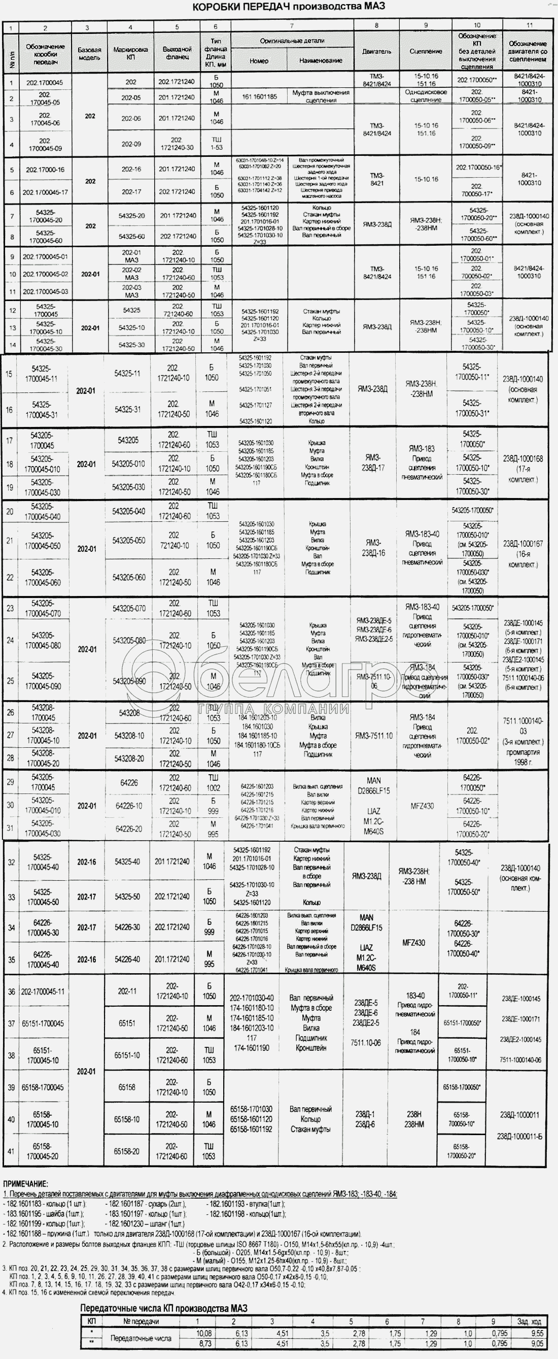Каталог запасных частей к технике: МАЗ Справочник. Коробки передач производства МАЗ