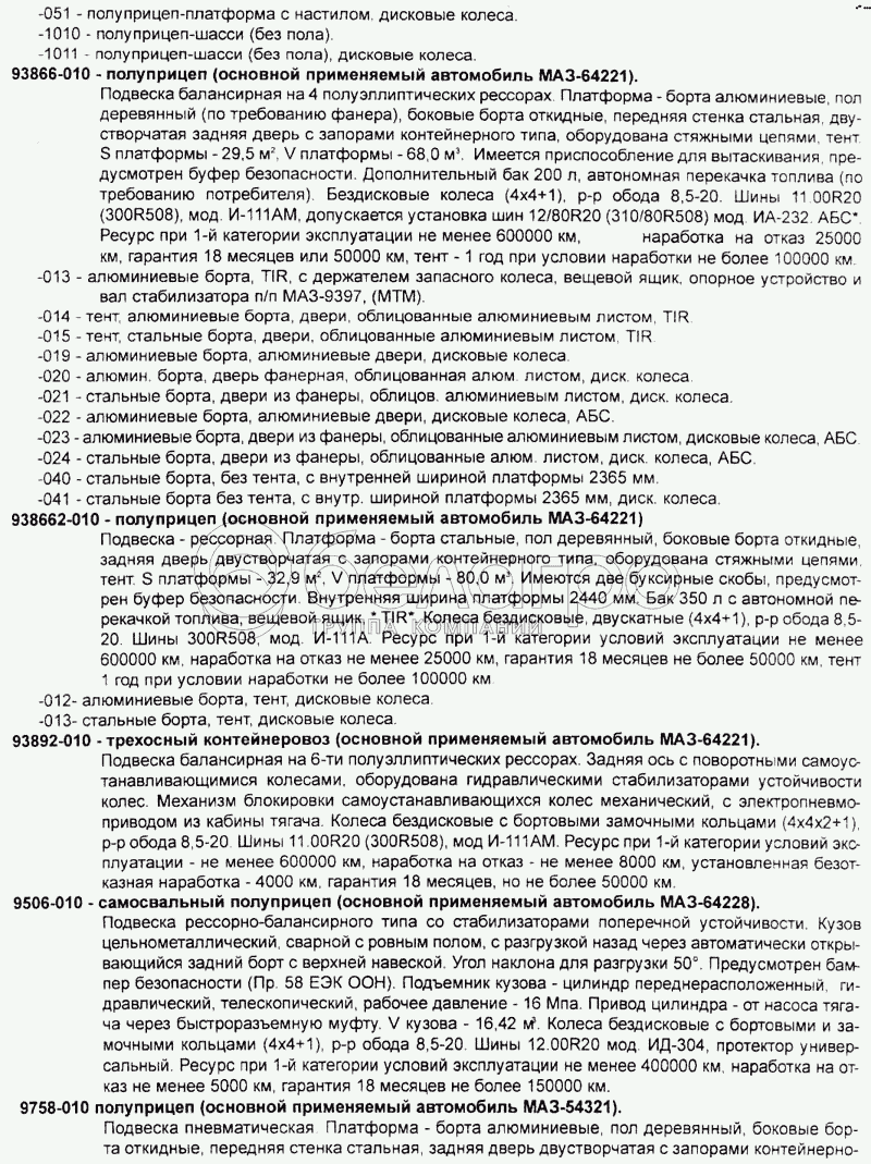 Каталог запасных частей к технике: МАЗ Справочник. Полуприцепы
