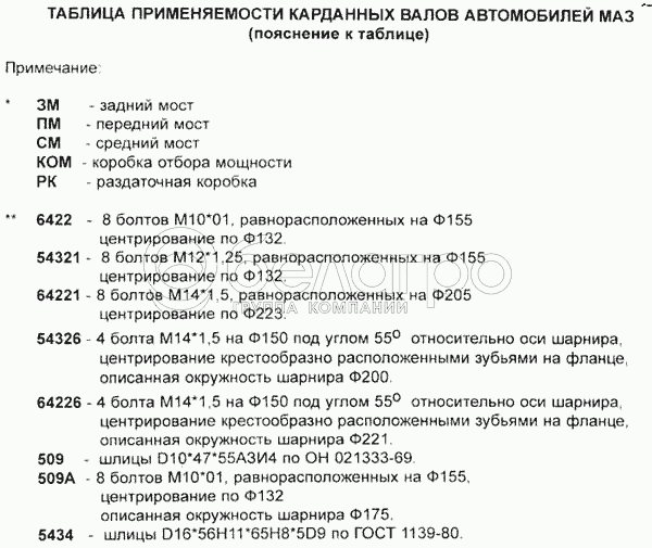 Каталог запасных частей к технике: МАЗ Справочник. Примечание