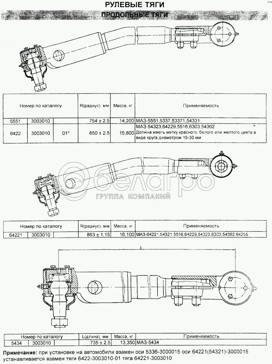 Каталог запасных частей к технике: МАЗ Справочник. Рулевые тяги