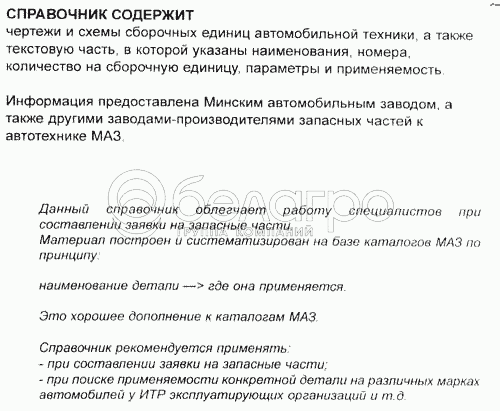 Каталог запасных частей к технике: МАЗ Справочник. Содержание справочника