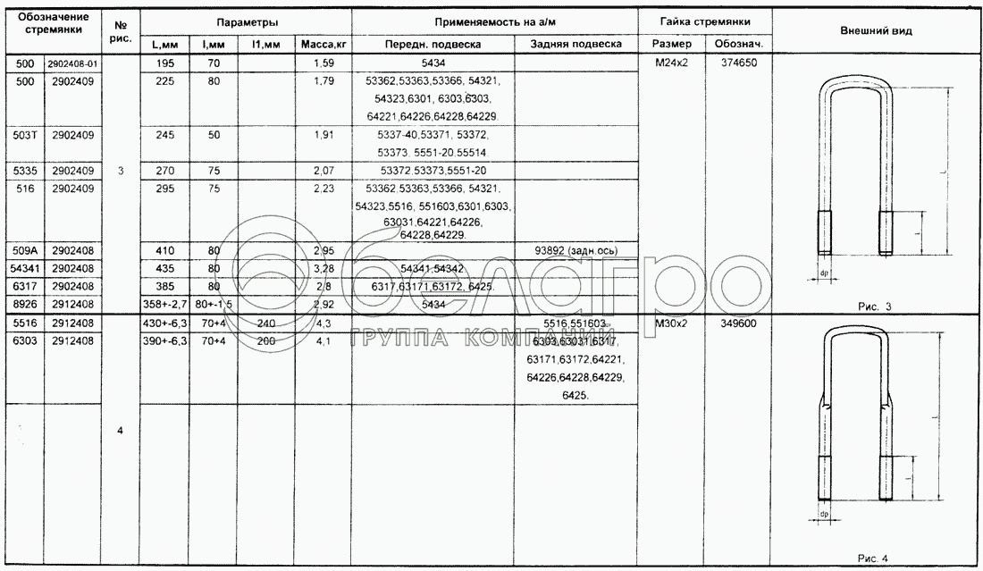 Каталог запасных частей к технике: МАЗ Справочник. Стремянки рессор. Применяемость и параметры