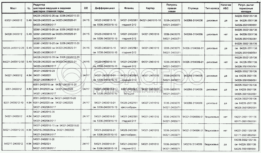 Каталог запасных частей к технике: МАЗ Справочник. Задние мосты автомобилей семейства МАЗ-6422