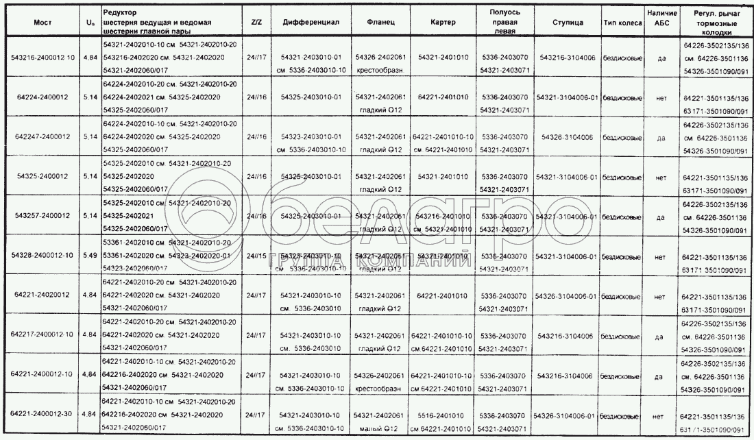 Каталог запасных частей к технике: МАЗ Справочник. Задние мосты автомобилей семейства МАЗ-6422