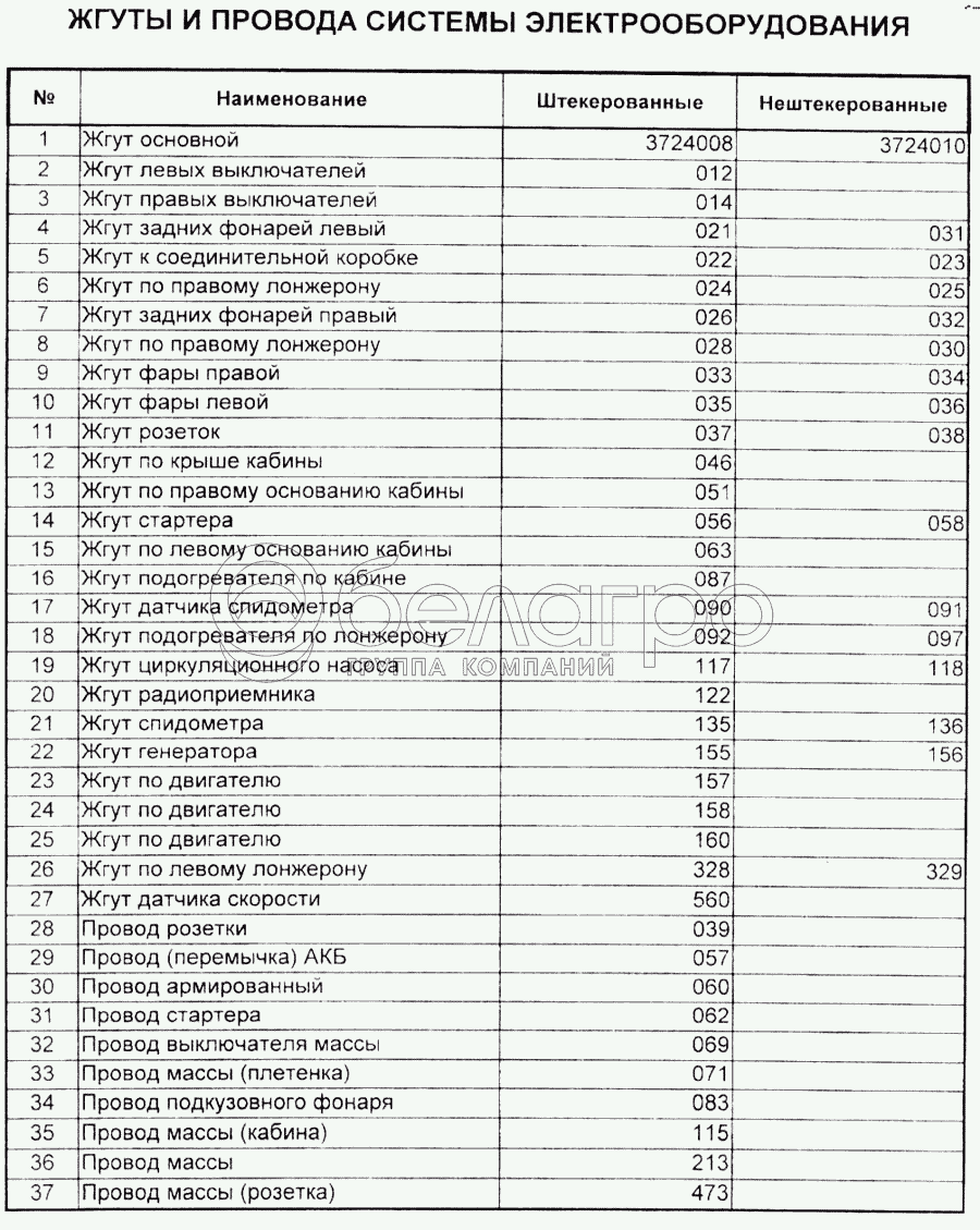 Каталог запасных частей к технике: МАЗ Справочник. Жгуты и провода системы электрооборудования