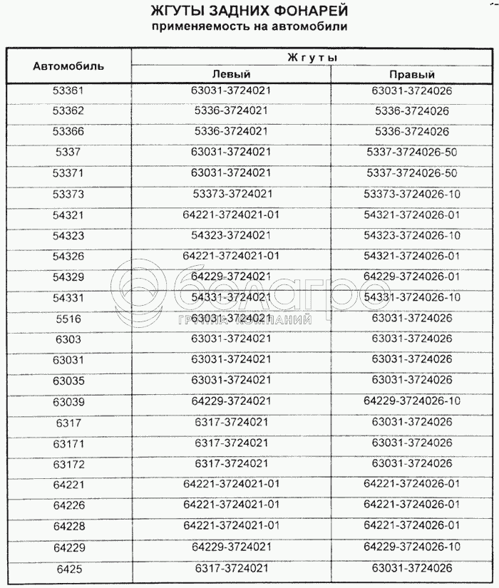 Каталог запасных частей к технике: МАЗ Справочник. Жгуты задних фонарей