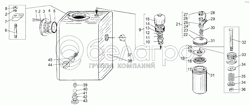 Каталог запасных частей к технике: МЗКТ-65151 "Волат". Бак масляный 65158-3410010-20
