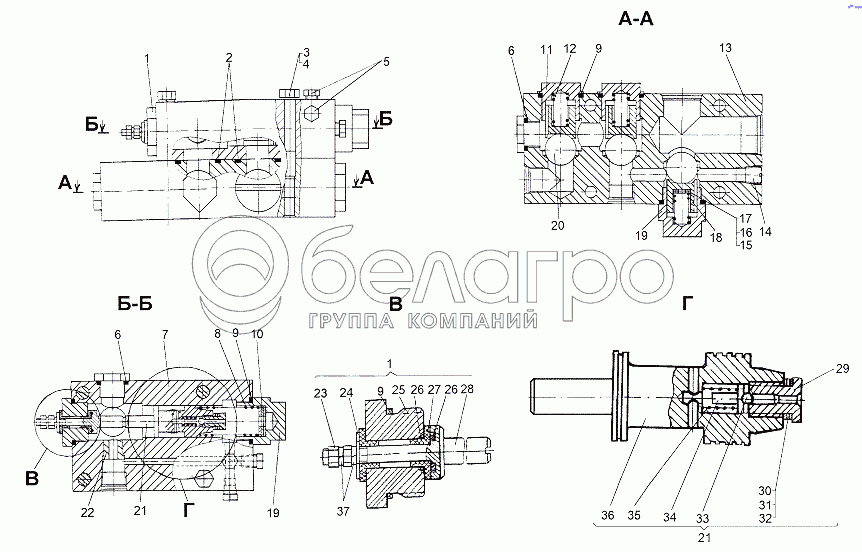 Каталог запасных частей к технике: МЗКТ-65151 "Волат". Блок клапанов 6923-3420010-10