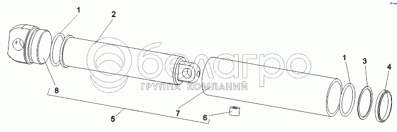 Каталог запасных частей к технике: МЗКТ-65151 "Волат". Гидроцилиндр 6515-8530010