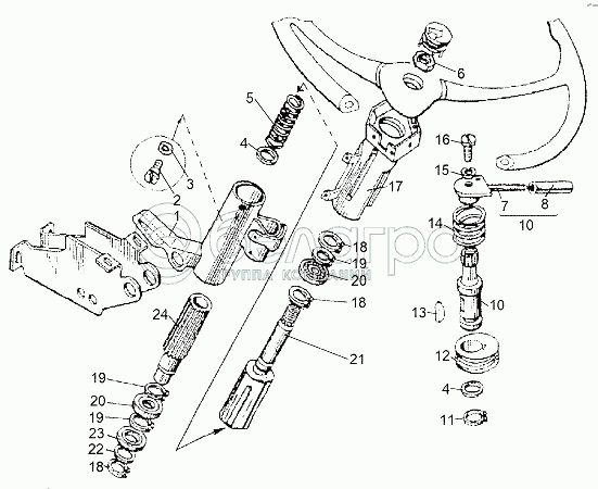 Каталог запасных частей к технике: МЗКТ-65151 "Волат". Колонка рулевая 64221-3444010