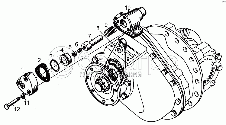 Каталог запасных частей к технике: МЗКТ-65151 "Волат". Механизм блокировки 6923-2509010-10