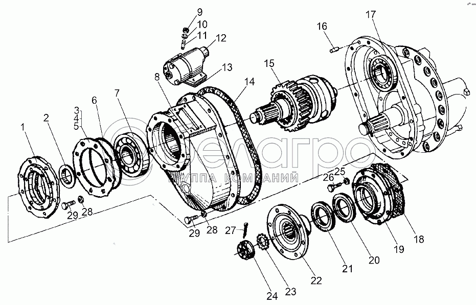 Каталог запасных частей к технике: МЗКТ-65151 "Волат". Межосевой дифференциал с картером шестерен