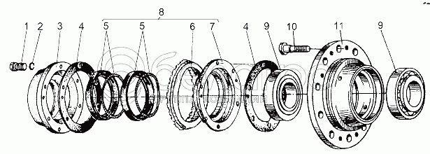 Каталог запасных частей к технике: МЗКТ-65151 "Волат". Ступица задняя 6923-3104010-10
