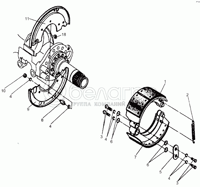 Каталог запасных частей к технике: МЗКТ-65151 "Волат". Тормоз среднего моста