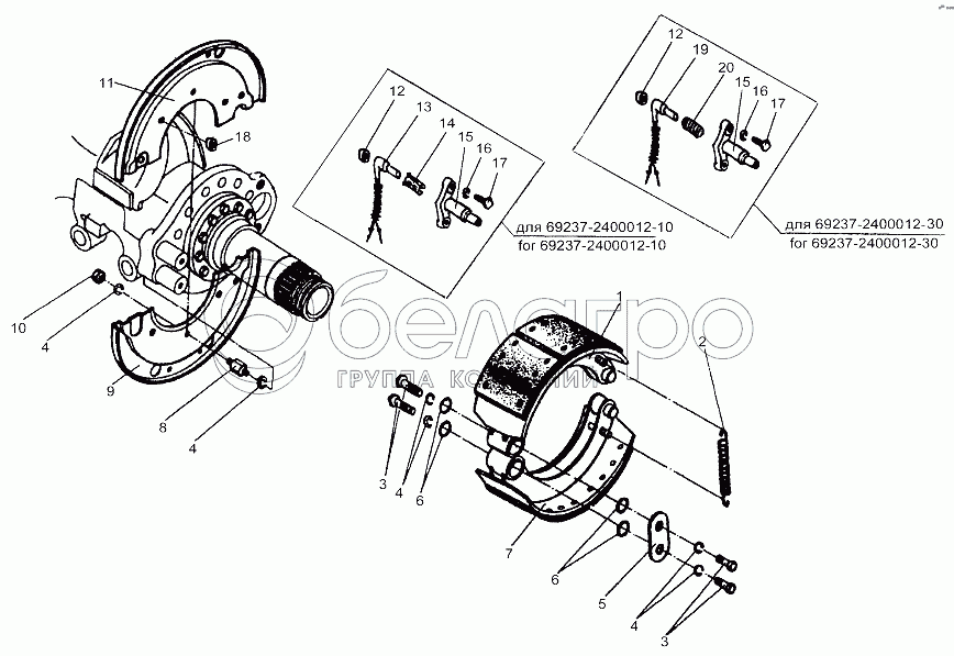 Каталог запасных частей к технике: МЗКТ-65151 "Волат". Тормоз заднего моста