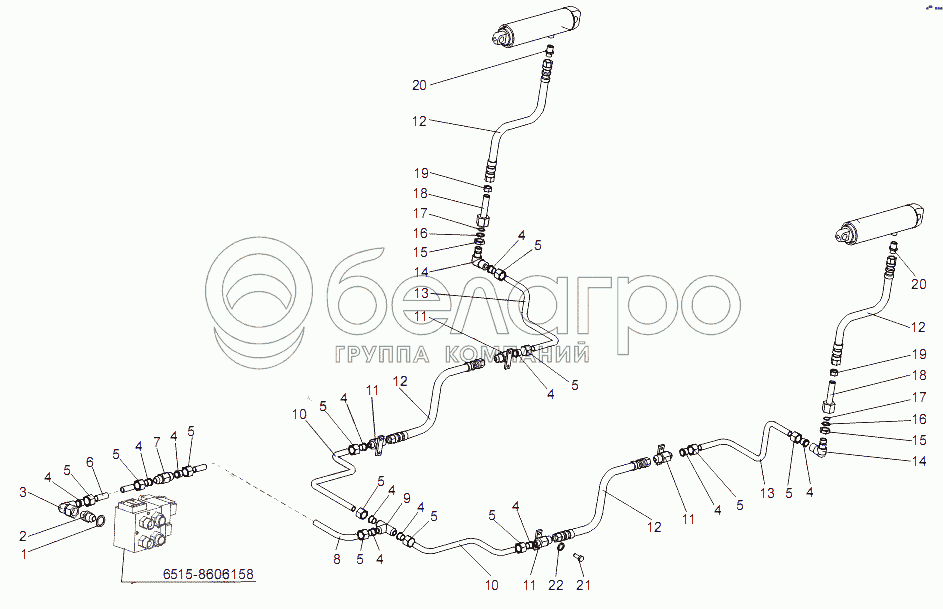 Каталог запасных частей к технике: МЗКТ-65151 "Волат". Трубопроводы механизма подьема борта