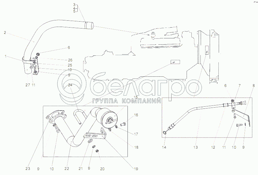 Каталог запасных частей к технике: МЗКТ-65151 "Волат". Установка агрегатов системы смазки