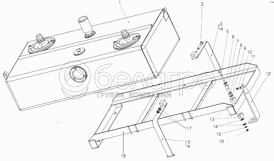 Каталог запасных частей к технике: МЗКТ-65151 "Волат". Установка бака