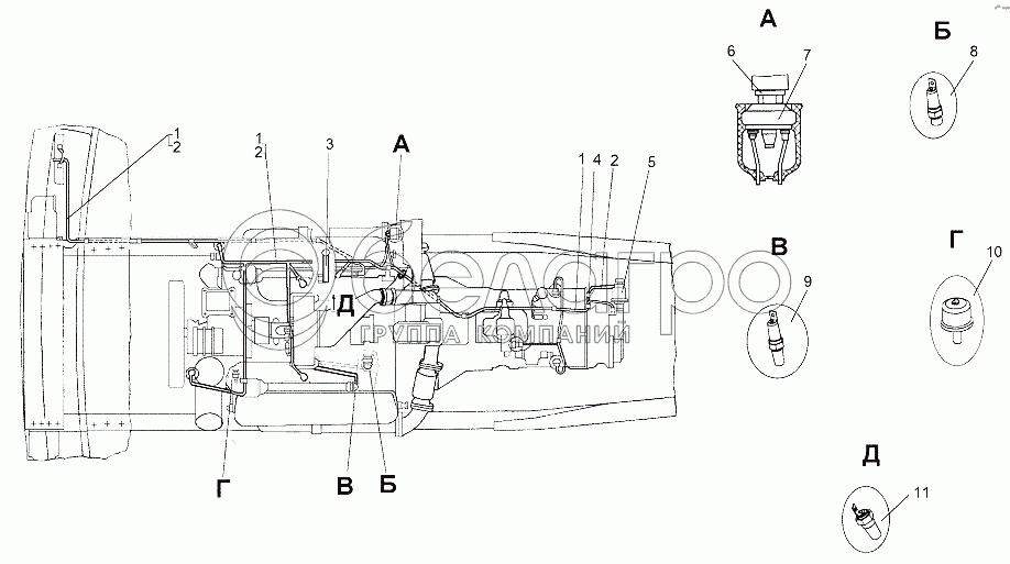 Каталог запасных частей к технике: МЗКТ-65151 "Волат". Установка электрооборудования двигателя