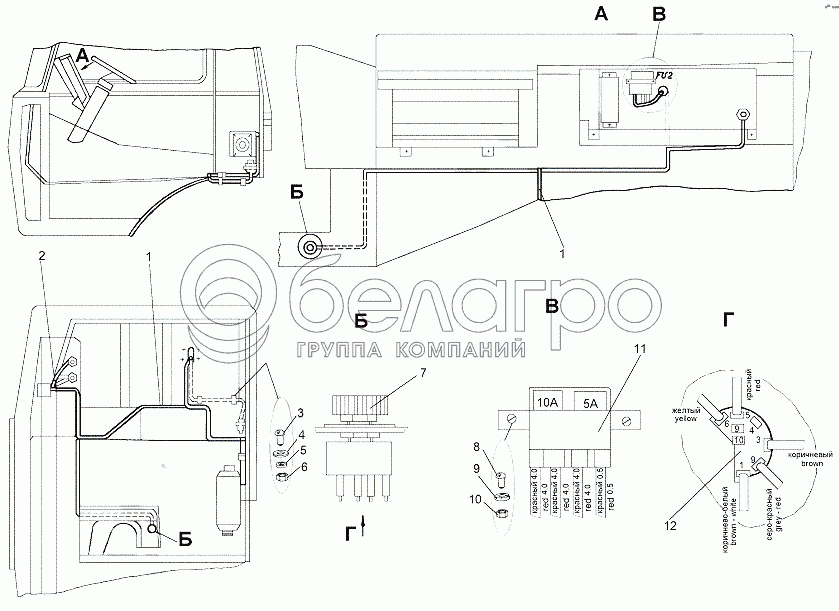 Каталог запасных частей к технике: МЗКТ-65151 "Волат". Установка электрооборудования воздушного отопителя