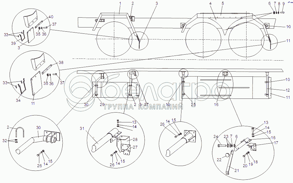 Каталог запасных частей к технике: МЗКТ-65151 "Волат". Установка крыльев (крылья металлические)