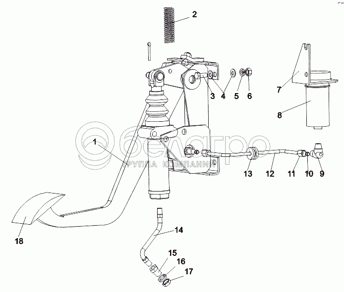 Каталог запасных частей к технике: МЗКТ-65151 "Волат". Установка механизма управления сцеплением